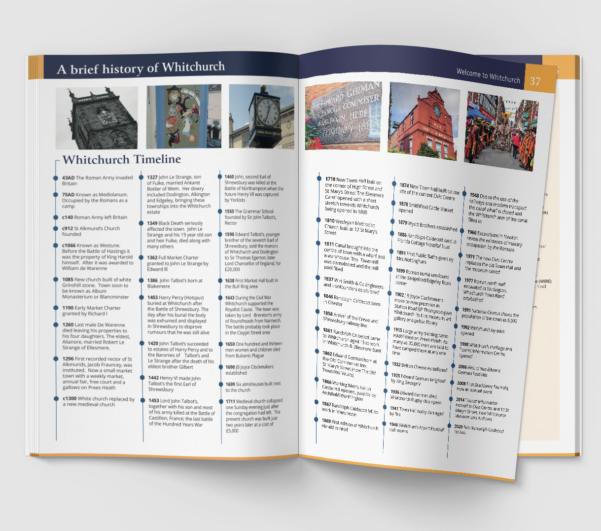 This was a 40 page magazine designed and artworked by myself, the aim of the publication was to promote businesses across Whitchurch. The magazine had listings, directories and spreads about the history of the famous town in Shropshire.